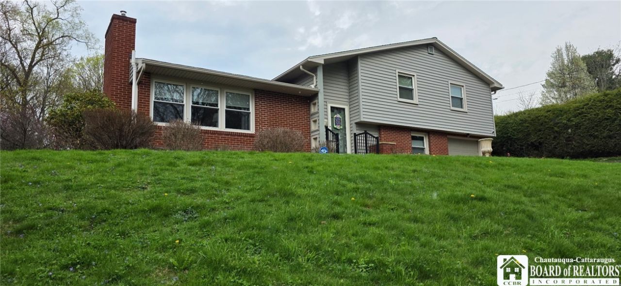 Beautiful brick split-level home with an in-ground pool, ideally located on the south side of Jamestown near Allen Park! This well-maintained 3-bedroom, 1.5-bath home offers an inviting open living room with a gas fireplace and a formal dining area-perfect for entertaining. The modern eat-in kitchen features updated quartz countertops, a center island, and plenty of workspace. The first level includes a convenient laundry room and a versatile bonus room, ideal for a home office or cozy den. Enjoy additional living space in the partially finished basement, perfect for recreation, hobbies, or crafting. An attached garage adds convenience, while the exterior truly shines with beautiful landscaping, a fenced-in in-ground pool, and a covered patio-perfect for summer relaxation. Over the past 15 years, the seller has completed numerous upgrades, including the roof, vinyl siding, gutters, planter, steps and walkway, garage door, blown-in insulation, three fire doors, replacement windows, shed, stamped concrete patio, concrete driveway, Zurn trench drains, gas insert fireplace, updated light fixtures, comfort-height toilets, Levolor top-down/bottom-up shades, security system, and more. Pool upgrades: 2024: Sand replaced in filter 2022: New pump 2019: Cell replaced for salt system 2012: Safety cover, Liner replaced, Change to salt system, New heater, New filter (Audio/video cameras on exterior)